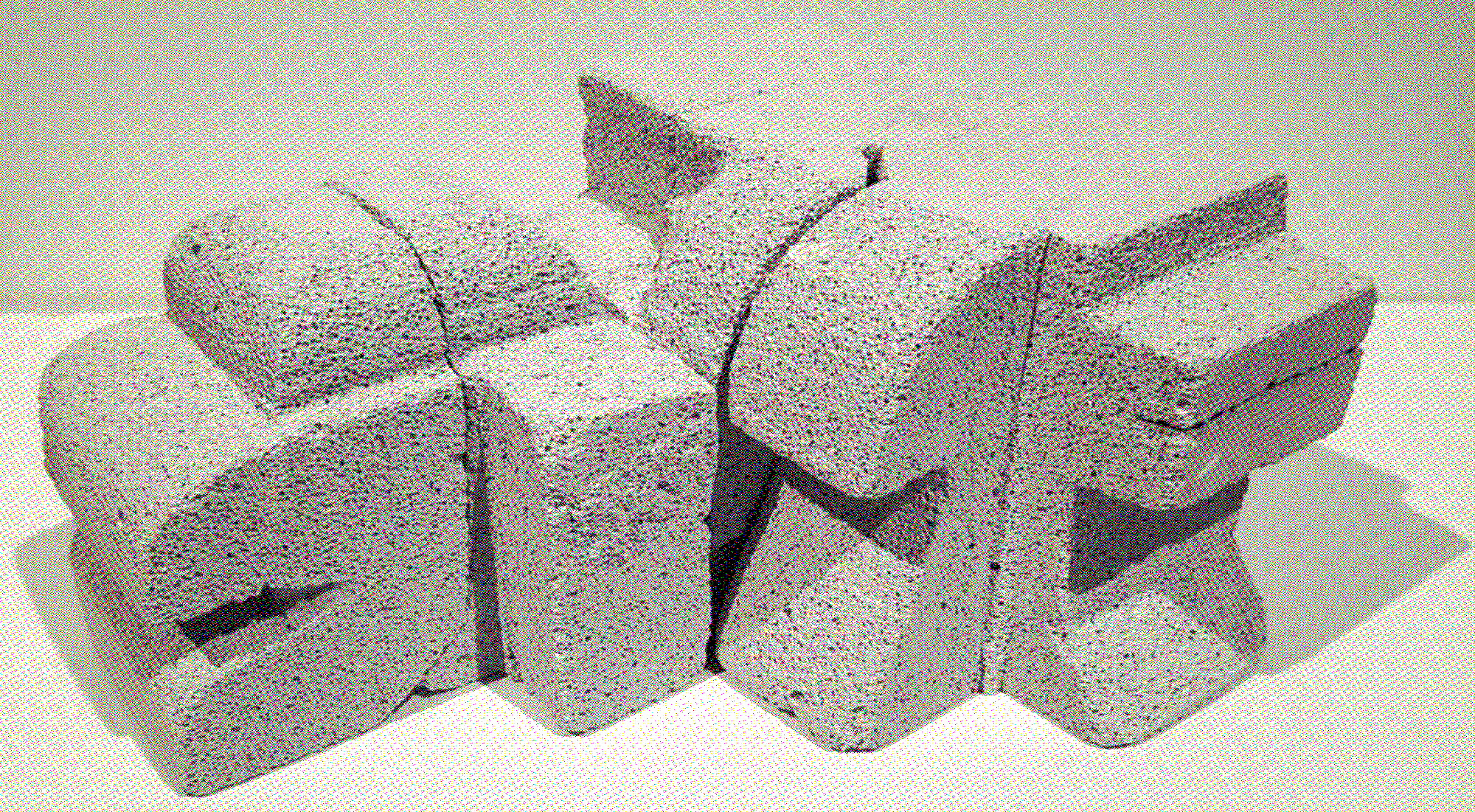 Sculpture taillée en béton siporex, application mobile de réalité augmentée, 23x13x11cm